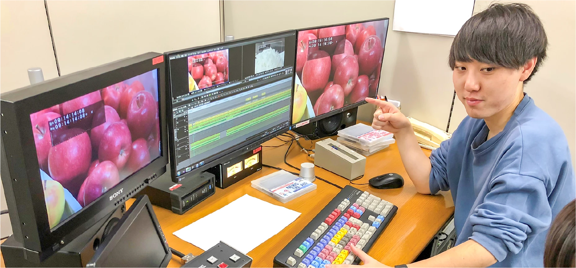 報道番組では、全道各地からSTV報道局に届く映像を“意図した映像”として編集し、視聴者へと届けます。 制作番組では、「どさんこワイド」のVTR編集や、「道産人間オズブラウン」など各番組の編集を担当しています。